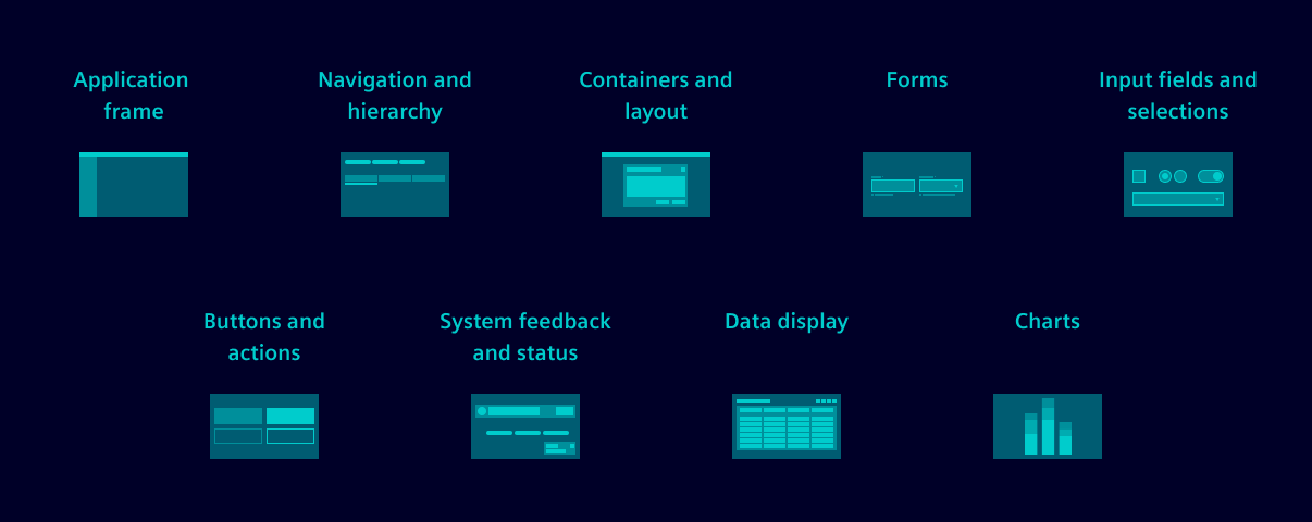 | Layout grid | Layout grids are used to structure the layout of a page or screen responsively. |